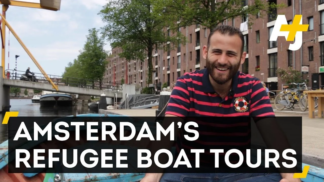 Mohammad came to Europe by boat. Now he volunteers for Lampedusa Cruises, piloting tourists through Amsterdam's canals on a migrant boat pulled from the Mediterranean Sea. This time, it's just for fun.